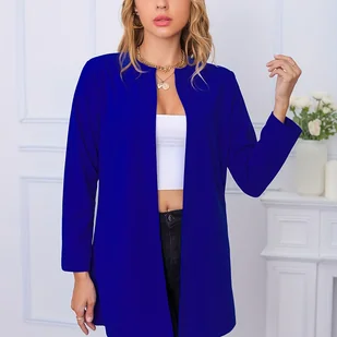 TEMU Kobieca Elegancka Długa Kurtka w Jednolitym Kolorze - Niebieski Kołnierzyk, Lekka Wiosenna/Letnia Casualowa Odzież Zewnętrzna, Pranie Maszynowe,
