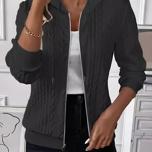 TEMU Kurtka Damska Casual z Kapturem na Zamek – Długi Rękaw, Elastyczne Mankiety i Sznurek w Kapturze, Jednokolorowa Wielofunkcyjna Kurtka na