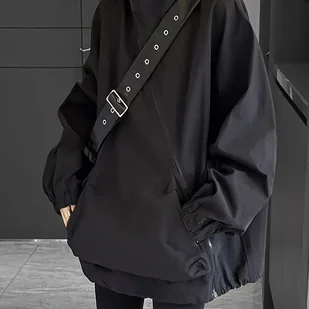 TEMU Kurtka Damska Czarna Wiatroszczelna z Kapturem – Casual, Luźny Fason z Kieszeniami, Długi Rękaw na Zamek, Uniwersalne Warstwowanie, Moda