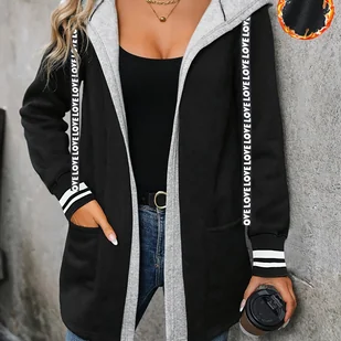 TEMU Kurtka Damska Z Kapturem na Jesień i Zimę – Dwukolorowy Płaszcz (Czarny/Szary), Przednie Kieszenie, Pranie Maszynowe, Odzież Wierzchnia Na Co
