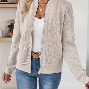 TEMU Loop Circle Damska Casualowa Kurtka z Kołnierzykiem Baseballowym na Zamek – Długorękawna, Jednokolorowa, Elastyczna Kurtka na Jesień i Zimę do
