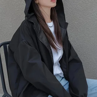 TEMU Minimalistyczna Kurtka z Kapturem dla Kobiet – Wiatroszczelny Płaszcz na Zamek, Pełne Zamknięcie Błyskawiczki, Tkanina Nieelastyczna do Prania w