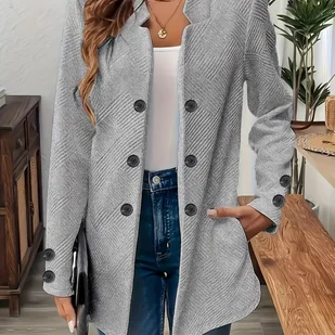 TEMU Modna Kurtka z Długim Rękawem, Teksturowana, Jednokolorowa z Podwójnymi Klamrami i Dekoracyjną Kieszenią