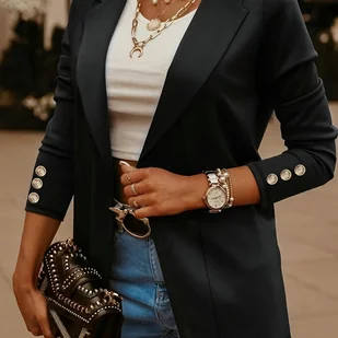 TEMU Modna, uniwersalna, jednokolorowa, midi damska kurtka z mankietami i długimi rękawami