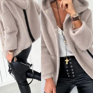 TEMU Puszysta Kurtka z Kapturem - Zimowy Płaszcz z Oversize Kołnierzem, Beżowy/Brązowy/Czarny/Szary, Wierzchnie Ubranie na Każdą Porę Roku, Pranie w