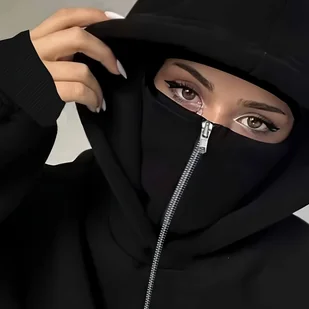 TEMU Stylowa Czarna Bluza z Kapturem dla Kobiet z Podwójnym Kapturem - Casualowa Długa Bluza z Długim Rękawem, na Każdą Porę Roku, Casualowa Odzież