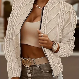 TEMU Teksturowana Kurtka Z Zamkiem Błyskawicznym, Swobodna, Jednokolorowa Kurtka Z Długim Rękawem Na Wiosnę I Jesień, Odzież Damska