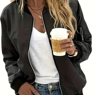 TEMU Youduomi Elegancka Kurtka Damska z Kołnierzem Stojącym i Kieszeniami na Zamek – Jednokolorowa Kurtka Wiosenna/Jesienna, Rękawy Długie, Lekka,