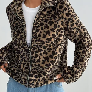 TEMU YY0603411 Damska Kurtka Casual z Stojącym Kołnierzem, Długi Rękaw, Reversybilna w Leopard Print na Jesień/Zimę
