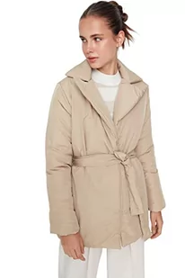 Trendyol Damska kurtka męska, jednokolorowa, oversize, kurtka zimowa, BEŻOWY, XS