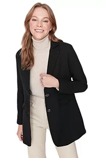 Trendyol Damska kurtka z klapą, jednokolorowa, dopasowana, czarna, 38, Czarny, 64