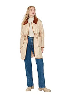 Trendyol Damska kurtka zimowa z klapą, jednokolorowa, oversize, beżowa, S, BEŻOWY