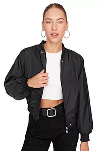 Trendyol Damska kurtka zimowa z okrągłym kołnierzem, jednokolorowa, oversize, czarna, S, Czarny