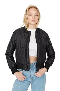 Trendyol Damska kurtka zimowa z okrągłym kołnierzem, jednokolorowa, regularna, czarna, M, Czarny