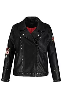 Ulla Popken Damska kurtka skórzana duże rozmiary haft kwiatowy, Schwarz (Schwarz 72708810), 48