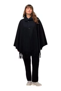 Ulla Popken Damskie ponczo w stylu dworkowym, z frędzlami, kurtka wewnętrzna, morski, 50-56 Große Größen