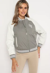 Zielona Kurtka Bomberka w Sportowym Stylu z Napisem Evalinas