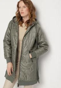 Zielona Pikowana Kurtka Przejściowa z Kapturem i Ściągaczami Fesarena