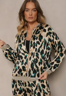 ZIelono-Beżowa Panterkowa Kurtka w Stylu Bomberki Ozdobiona Ściągaczami Rinnovaria