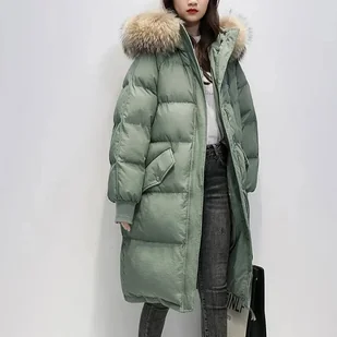Zimowa kurtka damska z kapturem i futerkiem - Zielony