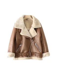Zimowa kurtka damska z kożuchem - Brązowy S