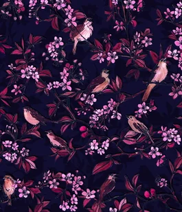 Apaszka uszyta z tkaniny wiskozowej w ręcznie malowany wzór kwiatowy w śpiewające słowiki przywoła wiosnę. Tło jagodowy granat prawie czarny. Powstało tylko kilka egzemplarzy - zupełnie wyjątkowych dzieł sztu ...