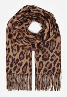 Brązowy Panterkowy Szalik z Wiskozy Zakończony Frędzlami Ferinda