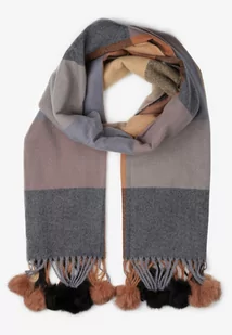 Brązowy Prostokątny Szalik z Kolorowymi Pomponami Komo