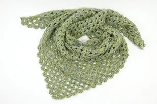 Chusta - apaszka zrobiona na szydełku z cieniutkiej akrylowej włóczki w kolorze butelkowym i oliwkowym. Leciutka i delikatna, a ciekawa kolorystyka doskonale pasuje do wielu stylizacji. Skład: akryl 76% ...