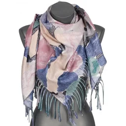 100 % wiskoza Pranie ręczne, można prasować. Wymiary chusty: 110 cm x 110 cm + 8 cm frędzle po dwóch stronach ZDJĘCIE NA MODELCE POGLĄDOWE