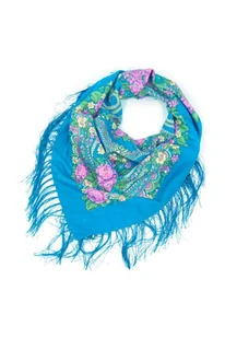 Duża damska chusta ludowa z frędzlami. Piękny wzór i długie frędzle przyciągają uwagę jak magnes. Chusta jest miła w dotyku i przyjazna dla skóry. Komponuje się świetnie z eklektyczną stylizacją łączącą różne motywy etno - etno look, czyli tzw. styl etniczny.