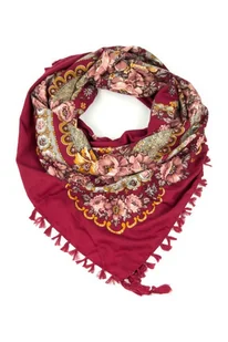 Folkowa chusta w wyraziste kwieciste wzory, zakończona frędzelkami.Wykonana z miękkiego, przyjemnego w dotyku materiału. Świetnie się układa.Spodoba się fankom folkowych stylizacji oraz stylów boho i etno.