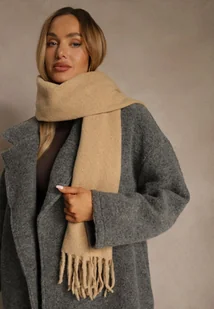 Ciemnobeżowy Gładki Szalik z Frędzlami Vetimare