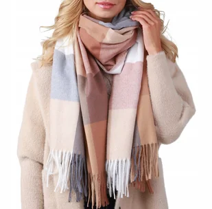Nowa kolekcja Elegancki SZAL bawełniane SZALIK z frędzlami w kratę NOWOŚĆ NA SEZON JESIENNO-ZIMOWY-WIOSNY Duży MODNY Miękki szal z FRĘDZLAMI o gładkim sploci...