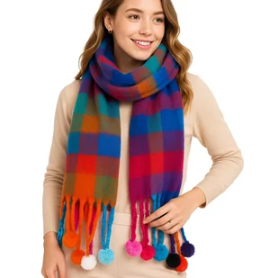 Ciepły gruby Szal damski FLUFFY POMPOM Ciepły gruby Szal FLUFFY POMPOM Kod producenta: 4924-2 Ciepły gruby szal damski FLUFFY POMPOM to stylowy i praktyczny dodatek na sezon jesienno-zimowy. Wykonany z przyjemnej w dotyku mieszanki bawełny i wiskozy, zapewnia komfort noszenia, a jednocześnie dobrze układa się na szyi i ramionach. Prostokątny fason ułatwia wiązanie na wiele sposobów, dzięki czemu bez trudu dopasujesz go do codziennych stylizacji, płaszcza czy eleganckiej kurtki. Wielokolorowy wzór w kratkę przyciąga wzrok i pozwala łatwo zestawić szal z różnymi kolorami garderoby.