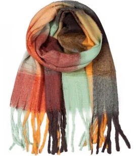 szal z frędzelkami ciepła, puchata dzianina W kwadraty bogata kolorystyka długie frędzle Wyjątkowy i niepowtarzalny szal, idealny jako dodatek Pięknie wykońc...