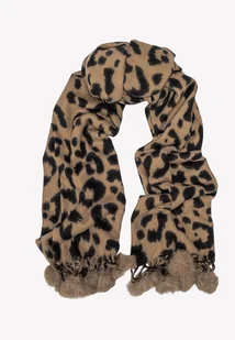 Ciepły szalik damski z pomponami szal w cętki 60x180 cm