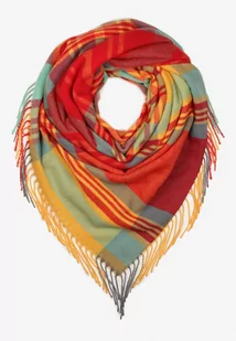 Czerwono-Żółty Szalik z Bawełny i Wiskozy Ozdobiony Klasyczną Kratą i Frędzlami Nerifla