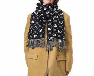 damski SZAL duży SZALIK z modnym wzorem 180x67 czarno-biały przytulny