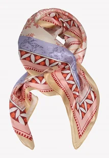 Duża apaszka damska jedwabna beżowo- różowa 88x88 cm