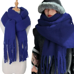 Duży Ciepły Szal Gruby Elegancki Modny Szalik Damski Zimowy Chusta Kolor Niebieski Szafir