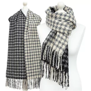 DUŻY DAMSKI CIEPŁY SZAL KASZMIROWY GRUBY W KRATKĘ PEPITKĘ KRATA PEPITKA - SZA-140-1