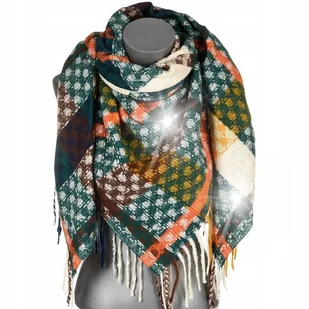 Modny, duży, przyjemny w dotyku szalik damski z oryginalnym wzorem w kratę i frędzlami Dzięki dużym rozmiarom możesz go nosić na kilka sposobów- owinąć szyję...