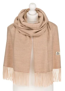 Elegancki duży modny szalik damski beżowy z frędzlami PETERSON szal jesień zima ciepły i miły w dotyku