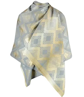 Elegancki dwustronny szalik z złotą nitką i wzorem w romby