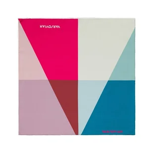 Jedwabna apaszka 53x53 cm, splot twill, unisex. Zaprojektowana w Polsce, rolowana ręcznie. V jak Verano, czyli po hiszpańsku lato – kształt V wpisany w kompozycję o kolorach dla typu urody lato, z biały ...