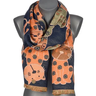 Modny, duży, przyjemny w dotyku szalik damski dwustronny z nietypowym wzorem w koty - idealnie dopełni każdą elegancką i casualową stylizację