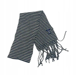 Granatowo-beżowy szal w paski Marka: GAP Stan: Używany Rozmiar: 154x15,5 cm Oryginalne produkty najlepsze marki nowe i używane z USA 113-28