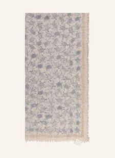 Półprzezroczysty wygląd. Tkanina. Z wełny. Wzór na całej powierzchni. Krótkie frędzle na zakończeniach. Lekki materiał. Miękki w dotyku materiał. Tkany materiał