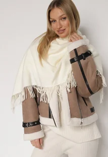 Jasnobeżowy Trójkątny Szalik z Wiskozy i Bawełny z Frędzlami Vetirala